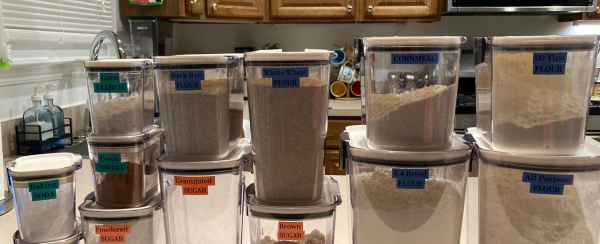 Includes a canister for flour, granulated sugar, brown sugar, powdered sugar, and two versatile "mini" containers.